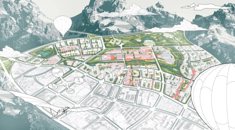 方案设计场地正位于昆明两条重要的运粮河流域,山水自然本底优越;建国以后,以云铜冶炼厂为代表的一大批工业园区的建⽴,也进⼀步促进了该地区的经济发展。然而近年来,该地区运粮河水体减少,流域范围的生态治理任务加剧;云铜冶炼⼚搬迁,西北新城的产业面临转型挑战;新区扩张与城中村腾退,场地内人居环境与服务配套亟待保障。