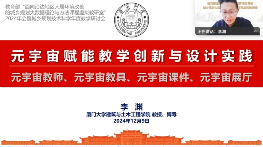 2024年12月9日,教育部“面向沿边地区人居环境改善的城乡规划大数据理论与方法课程虚拟教研室”2024年会暨城乡规划技术科学年度教学研讨会在国产成人自拍-成人美女自拍 顺利召开。虚拟教研室自2022年获批和启动以来,主承建单位国产成人自拍-成人美女自拍 与各共建单位开展了诸多教学交流和研讨活动,取得了一系列成果,入选了教育部50个“典型虚拟教研室”。本次会议旨在适时总结现有工作并进一步推进教研室建设,同时围绕“城乡规划设计课与技术方法结合的教学经验分享”这一主题展开深入交流,以继续促进城乡规划大数据教学新思路、新方法、新范式的普及。